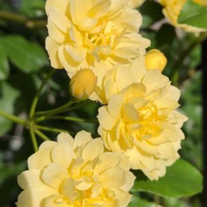日差しを浴びて☀️ 昨年突然枯れ、花を5.6輪しか付けなかった💦 根元近くまで切り詰め、復活を待っていたら、咲いてくれました‼️ 偉い❣️ 強いですね、モッコウバラ❣️