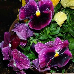 💐雨上がりのパンジー 雨滴が光を反射してとても綺麗でした。