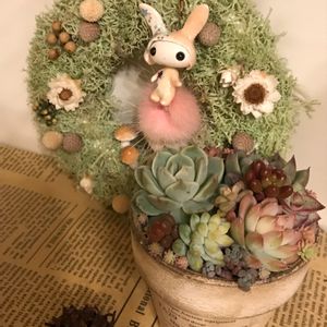 chiakiさんの盆栽鉢にちまちま寄せをしました♪ リボン天使ちゃん、急いでどこに行くのかな❓