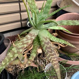 アロエベラより少し肉が薄めで、こんな模様のアロエは初めてです。キダチアロエでしょうか。