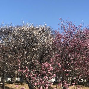 こんにちは☀️😊 とっても良いお天気なので 母の眠る公園墓地までお散歩🚶 季節ごとに楽しめるお花があって お手入れの行き届いた素敵な所です 今日は梅のお花が見頃でした💕 赤いお花はボケでしょうか⁉️🥰