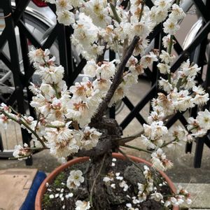 おはようございます🤗 梅1鉢満開になりましたが 一部散り始めました😓 もう1鉢は開花し出しました😁 まだ梅の花が楽しめそうですが もう少し見栄えの良い様に 剪定してやらねば😅