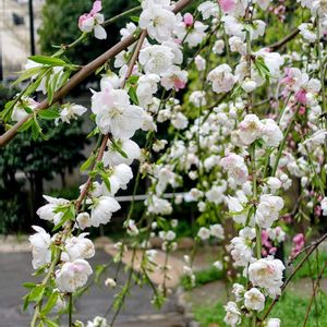 昨日の朝、通勤途中に見かけたシダレ梅。