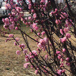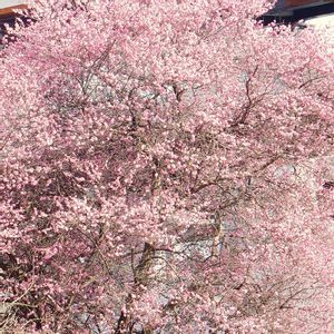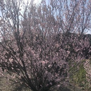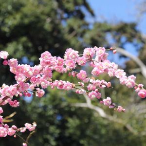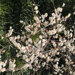 ウメ(枝垂れ梅) 出掛け先の神社境内で見掛けました。