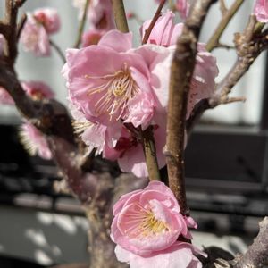 こんにちは🤗 梅2鉢目開花してます 薄〜いピンク色 1鉢目程の香りはしてないですが 少しの間楽しめそうです。 花が終わった頃に 剪定してやらねば😅