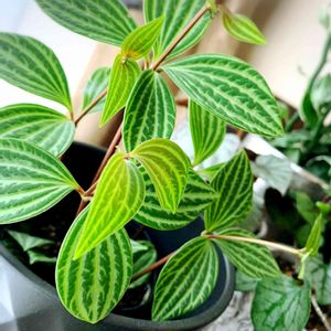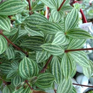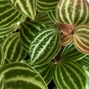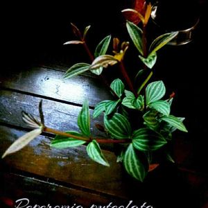 皆様、おばんでございます。 ペペロミアの定番、ペペロミアプテオラータ。 可愛いいっしょ。 アプリ加工で、カッコ良く撮れてますが、冬場は少し弱って色味がよくありませんでした。 ここんとこの暖かみのせいか、土の渇きが早くなってきたので、水やりするようになってから 茎が少し伸びてきて、葉色も少しづつ本来の色に戻ってきてます。👍