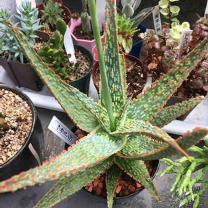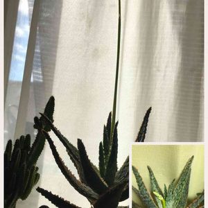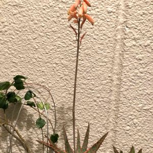 ビョーンと花芽が毎日1〜2cmくらい伸びています。アロエ・フラミンゴさん。 買ったときは花が枯れた後の状態だったから初めて見るので楽しみ。 しかしサボテンみたいにド派手なものでなく、小さいっぽい🌸のかな? 「え? これ花?」みたいな。それか今出ているのが開花状態かも。 成長した下の方の葉は赤みがあり、伸び盛りの葉、特に伸びたての茎付近?は薄いグリーンで綺麗です😍