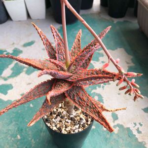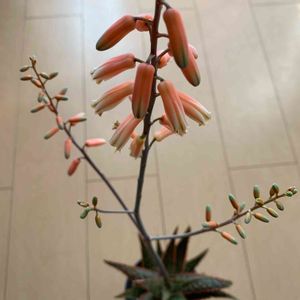 蕾をつけたアロエ フラミンゴ。何故か途中で曲がっている。