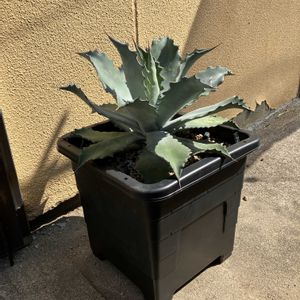 午後から…と言いつつ、朝から雨がパラパラ💦 アガベ シーマニアナ。 左は我が家のpiro産2020年実生の子。 デカイのは昨日、ダイプーさんがブービーさんに渡してくださいって置いて行った子。 大きいアガベは良き✨✨ ちびっ子からだと、この姿は想像出来ないですよね〜😅 でも、このデカイ子。 5号のセラアートで根鉢だったので、ちょっといろいろ植え替えるついでに鉢増ししました☜頼まれて無いけど🤣 ちびっ子も3ついたけど、うまくはずれないように出来たー😁 彼女のお家は広いお庭があるから、大丈夫でしょう☺️ 雨がたくさん降る前に買い物いかねば!