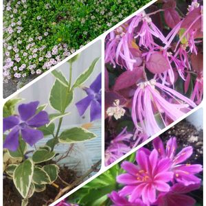 可愛らしい~💕ピンクの花の ✨タイム 紫色💜した ✨ツルニチニチソウ✨ 薄紫色かな⁉️ショウジョウバカマ こちらは、出先にてパシャリ📱 花が終わり、切り取り再度はながさきましたよ😃レウィシア