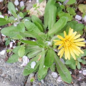 1枚前に投稿したトウカイタンポポの全体像です🌼 葉は切れ込みが浅く幅広いです。