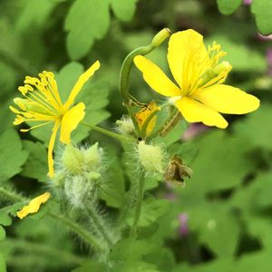 💛💛クサノオウ💛🌿 毛むくじゃらの蕾がついています 撮った後で気がついた👀! はらぺこ青むしクン🐛💛🌿