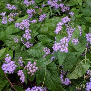 銀杏拾いに行った夫が撮ってきてくれたが、名前がわからない🙄 グーグルレンズではユーパトリウム’コエレスティナム’(別名青色フジバカマ)などと。