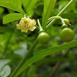 ハダカホオズキ ナス科ハダカホオズキ属 📝 果実が赤くなるが、ホオズキのように袋(萼)に包まれておらず裸であることからの名。 花は径8mm程。 真っ赤になった実が見てみたい🔴