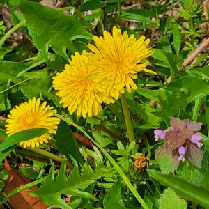 おはようございます🙋♀️ 🏷️今日のお花 タンポポ🌼 散歩道🚶♀️ 西洋たんぽぽの側にはヒメオドリコソウが咲いてました💖💓😃 過去picより