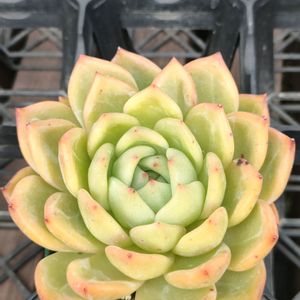 葉にウォーターマーク(白い模様)が浮き上がる種のエケベリア。とても綺麗な形をした子です。