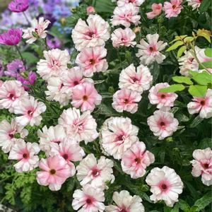 八重咲きチューリップ、ドリームタッチ。 もりもりのビオラしんしんの間から咲いてくれました〜💕🌸🌷🌸💕 雨の重みでしなだれるラックス・アリアドネさんと、キラキラのピンクコラボです✨