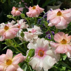 ラナンキュラスラックス アリアドネ💓 先日の雨で水も滴るいい女💓 🏷19日はピンクの日! に参加します💓 先シーズンやっと手にすることが出来たラックスさん2種類アリアドネとロティス💞 鉢に植えて冬断水し、春にお水再開するのが遅くなって心配したけど無事に咲いてくれました💓 ただ背が低いちびっこチャンになりました💦 今日は暑い💦 母が久々にデイサービスに行ってくれたので、せっせと朝から多肉ちゃんの植え替え🍀 お腹すいたのも水分も我慢して、やっとプレステラ105終わった~~~と思ったら、まだ1ケースあった🙀 去年のチョンパ組もちびっ子ちゃんもある💦 汚庭が足の踏み場もなく、とっ散らかし _( _´ω`)_フゥ