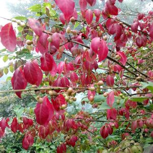 ニシキギ🌳🔴赤い実💖 こんなに可愛い実がなるなんて‥知らなかった😳 葉の色付きは未だ錦とは言えませんが!