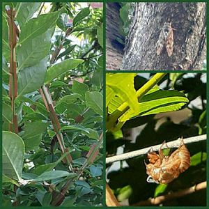 ↘️晩夏、蝉ファイナル⁉️ ぶら下がる殻を見つけたのは7/22 早朝。 背中にほんの少し、白いものが見えている? 羽化には2、3時間かかる… 始まろうとしていたのか🤷 あれから3週間。 ↗️の蝉のように、無事に 鳴いていてほしい。 蝉といえば、 日本では儚きものの代表。 でも、お国変われば🇨🇳🇫🇷… 羽化できた蝉の脱け殻は 縁起が良く、幸運のシンボルになっている🙆 ⬅️ニシキギ(錦木) 花期は初夏、紅葉は秋。 若い枝では、表皮を突き破りコルクの翼(よく)が発達する。 カミソリノキと呼ぶ地方もある🍃