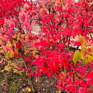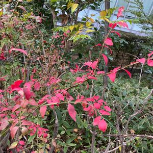 錦木(ニシキギ)の紅葉が鮮やか。 グラデーションがきれい。 落葉はいつ頃だったかな。