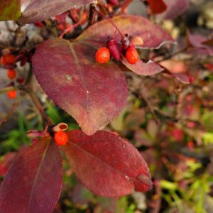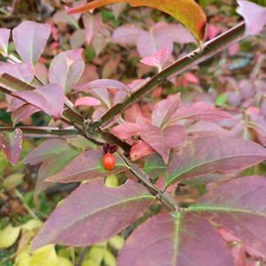 同じニシキギ科のニシキギ(錦木)の葉の紅葉です。