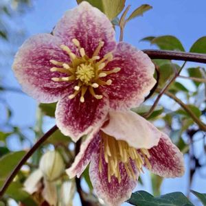 クレマチス 下向きのお花だったので覗き込んで写真📸撮りました❗️冬でも咲くんですね。 可愛い😍❤️