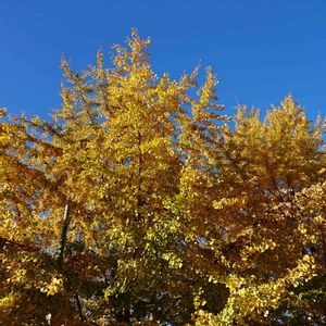 だいぶ黄色が鮮やかになってきました。青空とイチョウの キイロは、映えます✨