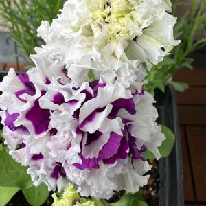 この前のデカいペチュニアさん 上の花も咲いてきて重そうです。