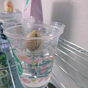 アボカドさん、二ヶ月ほどしてようやく根を出しました! どんどんそだって!