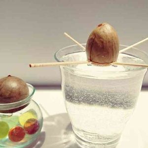 どなたか教えていただけるとすごく嬉しいです✨ アボカドの水耕栽培で発芽しましたが、先端がこんな状態で、ここから伸びて来ません😭 太い根から細い根が出始めています。 この子の芽、どうしてあげるべきでしょうか?