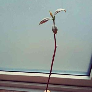 こんにちは😊 数日前に芽が出たアボカド。 葉っぱが開きました‼️😃💕 ウキウキ🎶