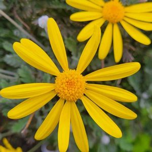 おはようございます😊 11月22日(金)☔15℃予報 今日は一日☔かなぁ 今は雨上がっているその間に🤳°・*:.。.☆🌼*・🌼*・ 🏷今日のお花...♪*゚ ユリオプスデージー🌼*・ まだ2年目 先代は大きな木に🌳6年目で ❌🌟 ̖́-🌼*・🌼*・🌼*・🌼🌿 元気なお花🌼*・🌿 寄せ植えに小さな苗をお迎え また先代見たい大きくなりそう 花言葉『円満』『夫婦円満』etc.だそうです 今日は雨粒できんきら✨ 🏷きんきら金曜日 🏷黄色い金曜日 🏷金曜日の蕾たち ②シーマニア🧡💛まだ元気︎💪 ③かがり弁菊の黄色🌼*・ 可愛い💞💞💞 ④小菊今から開花蕾達可愛い ⑤最近お迎えしたビオラも可愛い💕💕💕 蕾たちたくさん これから楽しみです🤭✨ 素敵な週末をお過ごし下さい