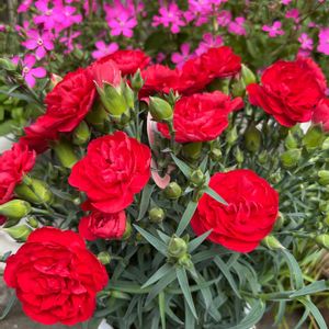 カーネーション💕 母の日の2日後、300円でお迎え😁 つぼみが咲かないことがよくありますが、植木鉢の下から根っこが出てる場合、植え替えしてあげるといいそうです😊 あと咲かないつぼみの先っちょをハサミで切ると咲きやすくなるらしい。 やってみよう〜 後ろの花は、ピンクパンサー💕 今年はたくさん咲いてくれました♪