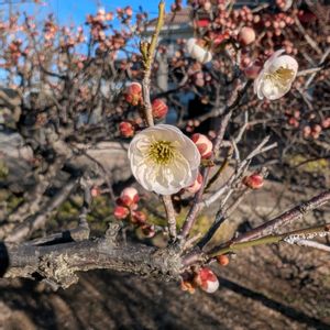 ウメ「思いのまま」です。 咲き分けで紅白両方の花が1本の木に咲きます。 今年も白い花が優勢です。 例年白の方が多い気がします。 まだ蕾も多くてこれからという感じです。