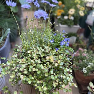 最近の暖かさで寄植えが、皆一回り大きくなった気がします。 #1 見ごろのブラキカム #2 ミニハボタンの花とヒューケラの花 #3 フェリシア スプリングメルヘンとロベリア レオンブルースプラッシュ
