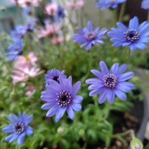 フェリシア ブルーデージーに似ていると思ったら,やはり同じフェリシア属でした 淡いピンク,濃い紫も咲きました