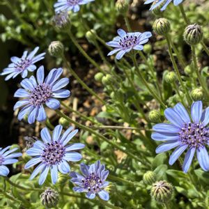 こんばんは😊 💜🩵フェリシアスプリングメルヘン🧚🧚 蕊の色も可愛いです〜🥰 💜オステオスペルマム シルム‥今季初オステオさんです 今日は都心で最後のお花見🌸‥葉桜になる手前でしたが気持ち良い1日でした~🌸🌸