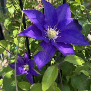 こんにちは️☀️ 昼頃から日射しは強くなってきたけど湿度が低いので室内は心地よいです🥰 庭のブルー系のお花達 撮りました💙💜 ①クレマチス💜咲き始めました 10年は軽く越えたかな?鉢植から地植えにしたら年々元気アップ💪 ②フェリシア・スプリングメルヘン💙はGSで知って蘂の色合いに一目惚れ😍💘 どうしても育てたくてメルカリで種を購入しました✋ 昨年は種取りして秋に蒔いたら沢山生えたんだけど🌱🌱🌱…植え替えたら何か元気がない💦😅 ③エレモフィラニベア💜 フワフワの優しいお花☺️ 根っこがパンパン😅鉢増しサボっています🪴 ④生垣の根元の花壇はアジュガが広がっています💜💙💜 この時期になると急にムクムク成長してあっという間にお花がいっぱい咲きます🎶🎶 ⑤こぼれ種からのアズーロコンパクト🤍💙 毎年いっぱい生えてくれます🌱🌱🌱植え替えが遅かったのでまだフワフワになっていません😅今から頑張ってネ\(*⌒0⌒)♪ ゴールデンウィークお天気も良さそうかな🥰 お健やかに楽しくお過ごし下さい🎶💓🎶💓