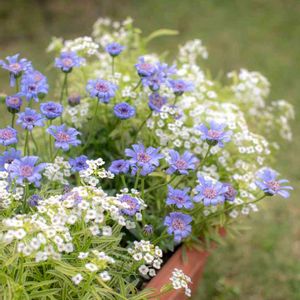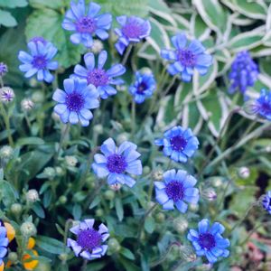 種まき失敗しても諦めきれずネットで見つけて苗を取り寄せたフェリシアが到着🚚 色指定できず8ポット中ブルーは2つとちょっと残念…