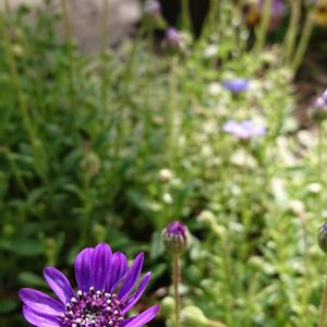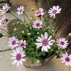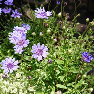 菊? とりあえず パチリ Googleレンズで調べたところ「フェリシア」のブルー、ピンクようです。🤗 「フェリシア・スプリングメルヘン」でしょうか?