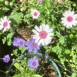 昨日から今朝にかけての雨と風で☔️🍃🌀🍃 庭のお花たち、みんなズタボロです:;(∩´﹏`∩);: あと1日行ったら連休~😂 植え替えてあげるから待っててね🥺🌸 こちらはズタボロになる前、 一番可愛い時に撮りました🤗🌸🌼*・ オステオさんは種まきっ子からの挿し芽っ子(^^♪ 種まきのお気に入りフェリシア2色💙💕 さりげなく🙄?ラグラスバニーテール🐰🐰🐰