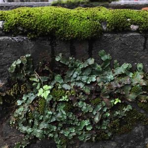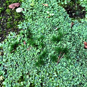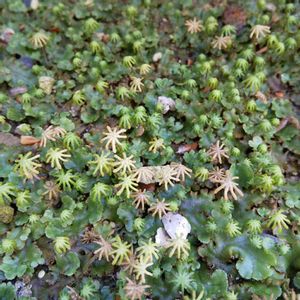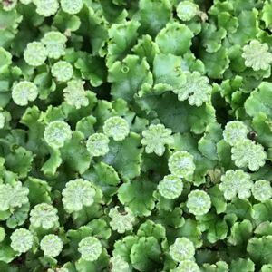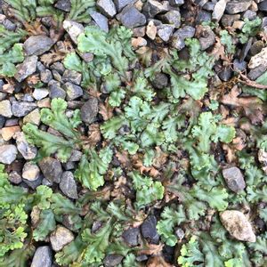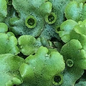 ゼニゴケ 自宅周辺の半日陰に出ていました。触るとチクチクして硬いです。