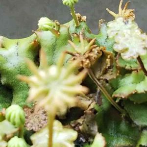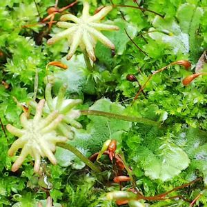 地を這う 小さい葉っぱの上に キノコ型の新芽が…