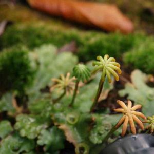 街路樹の根元 ゼニゴケの葉状体と雌株 形が面白いからつい見ちゃう