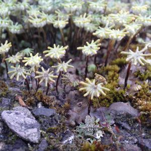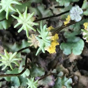 コケ の仲間でしょうか? 黄色い花が咲いているように見えます。