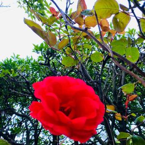 我が家の中庭に朱赤の薔薇が咲いてました〜🌹 放置なのに‥😅 薔薇さん、ごめんね。貴方は素晴らしいです。美しく咲いてくれてありがとうm(。v_v。)m