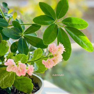 おはようございます☀️ 夏からずっと咲いてくれてる八重咲きベゴニアとシェフレラの寄植え💗 昨日はいいお天気で、ガラス越しに光を浴びて透明感のあるGreenが爽やか✨✨ 優しい色合いに癒されますね(*´-`*)♡ 金曜日、もうひと頑張り‼︎一週間が早いです💦 今日も元気にいってらっしゃい👋