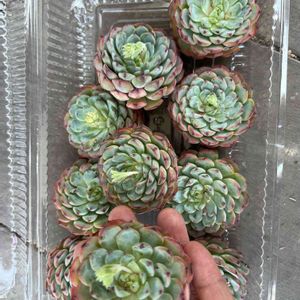 おひさまの エケベリアセット 届いた〜🤣 クール便送料込み エケベリア5個+おまけ1個で 5500円 豪華過ぎんか🤩 おまけと言っては失礼な ルビーブラッシュちゃん♥️ この間2個お迎えしたけど また欲しくて昨日行ったら 売り切れで残念〜💦って 思ってた所に 入ってて歓喜😆✨ お得過ぎる…🤤 また販売して頂きたいわ〜