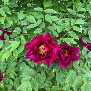 お早う💝御座います🙋♀️ 🌸今日のお花🌸 ボタン科 ボタン属 中国 シベリア原産 1️⃣ 他所様地植え 2️⃣マーケットの切り花(芍薬) 3️⃣牡丹(ボタン)去年散歩で📸 葉の切り込みが有るのは牡丹